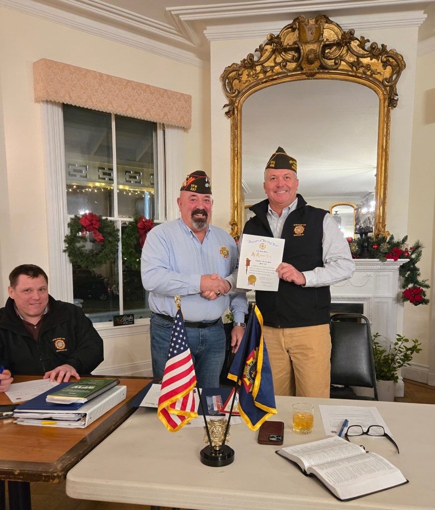 RI VFW State Commander Joseph Diniz visited Post 406 at our December monthly meeting to personally present the award to Post Commander Anselm Richards. The award includes a certificate, ribbon streamer, citation, and special recognition in the national VFW magazine. Commander Richards in his remarks cited the importance of individual members contributing and working as a team that enabled the post to earn this highly coveted award.